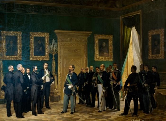 | Keywords: Atto di annessione al Regno d'Italia presentato a Vittorio Emanuele II dagli invitati toscani.jpg it Atto di annessione al Regno d'Italia presentato a Vittorio Emanuele II dagli invitati toscani http //www bridgemanimages com/en-GB/asset/626607//victor-emmanuel-ii-receiving-tuscan-representatives-with-the-decree-of-annexation-to-the-kingdom-italy-19th-century context 25searchContext 25 Giovanni Mochi 1829-1892 1866 PD-old-70 Portrait paintings of Victor Emmanuel II of Italy | ||||