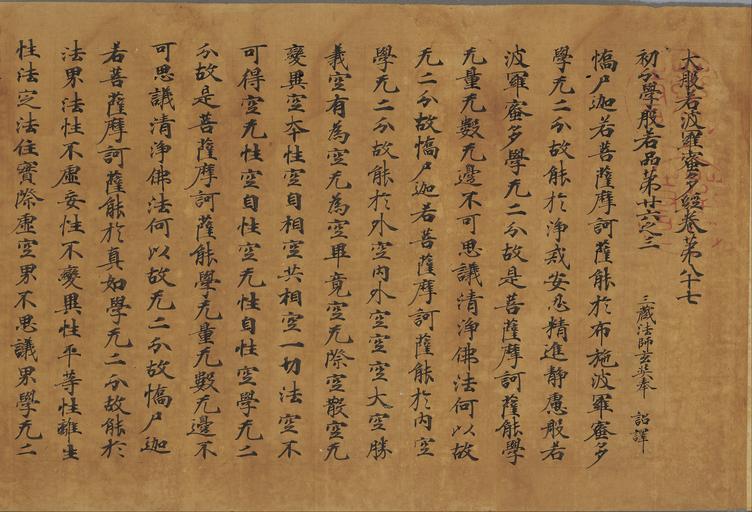 | Keywords: Attributed to Zhang Sengyao - Daihannya-Gyo Sutra (Yakushi-ji Version) - Google Art Project.jpg  commons date commons medium commons dimensions commons institution Institution Osaka City Museum of Fine Arts commons location commons references commons object_history commons exhibition_history commons credit_line commons inscriptions commons notes commons accession_number commons source commons permission commons other_versions commons zoom core title Daihannya-Gyo Sutra Yakushi-ji Version core creator Attributed to Zhang Sengyao core date dateCreated 0700/0800 core location locationCreated Japan core format w1034 x h27 7 cm core type Calligraphy core rights Osaka City Museum of Fine Arts core format medium Ink on paper c-05eb813c customtext artist_name japanese ä¼ ãƒ»æ 野éšé¤Š c-05eb813c customtext title japanese 大般若経(薬師寺経) c-05eb813c customtext period japanese 奈良ã 8ä¸–ç´ c-05eb813c customtext credit_line japanese 田万コレクション google display_date 0700/0800 google is_artproject TRUE google is_gigapixel FALSE google is_secured TRUE google partner/id 0000000005eb813c google picasa_token Uj4tt8k1IZKB8WtSGhZlqUL7R5M special url_id jQGTYaQo1WJACw google partner/name Osaka City Museum of Fine Arts special partner/name_no_lang Osaka City Museum of Fine Arts PD-old-100-1923 Google Art Project works by Zhang Sengyao attributed Zhang Sengyao |