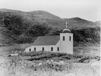| Keywords: AttuChurch1938.jpg Russian Orthodox church and graveyard at Attu Island Alaska 1938 Built in 1932 it replaced an old church which was a grass-roofed barabara built of driftwood The church served the community of 34 Aleutians in Attu Village before the World War II http //www nps gov/aleu/learn/historyculture/upload/4-Attu-Before-the-War pdf Attu before the war Original caption This is the Russian Orthodox church at Attu Village It ministered to the spiritual needs of the two score natives living on Attu Island at the time of the Japanese invasion Some of the Island's wealth of flowers can be seen coming into bloom beside the church Visitors to the Aleutians have expressed surprise at finding within easy reach masses of Alpine flowers which in this country and in Europe mountain climbers scale the highest peaks just to see cph 3a35420 http //www loc gov/item/cph18979/ U S Department of the Interior photo http //www loc gov/pictures/item/owi2001046040/PP/marc/ Farm Security Administration/Office of War Information Black-and-White Negatives 1938-03 O J Murie PD-USGov Russian Orthodox Church Attu Island Alaska 1938 in Alaska |