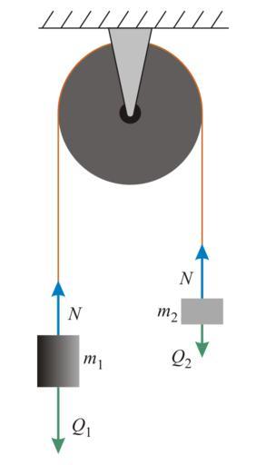 Keywords: AtwoodMachine.svg en Atwood machine pl Schemat maszyny Atwooda own Mpfiz 2008-05-31 Atwood's machine Pulley force diagrams SVG mechanics