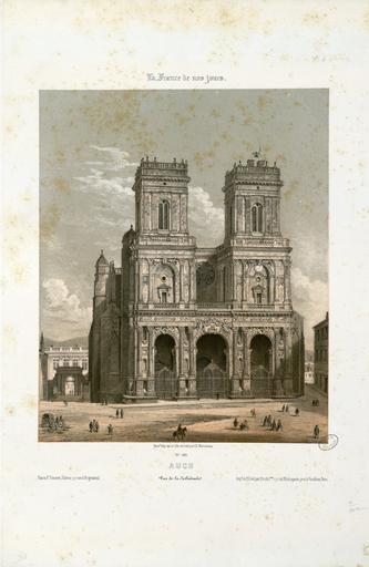 | Keywords: Auch - Vue de la Cathédrale - Fonds Ancely - B315556101 A MERCEREAU 7 015.jpg Impression en 3 coul par Frick frères à Paris Fait partie d'un ensemble de recueils de lithographies de Mercereau composés de lithographies provenant de La France de nos jours vaste suite publiée par livraisons de 1853 à 1876 et comprenant 475 planches en deux tirages l'un à deux teintes noir et bistre l'autre en couleurs Les libraires ont réuni ces planches en albums de composition variable quant au nombre de planches et aux dessinateurs Asselineau Mercereau Maurice Deroy etc Un titre Les Pyrénées par Ch Mercereau; Bagnères-de-Luchon par Ch Mercereau était frappé sur le plat supérieur de la reliure de l'album ainsi que le nom du Libraire pour lequel il était réalisé La plupart des recueils de ces planches pyrénéennes portent le nom de Sajous libraire à Bagnères-de-Luchon Pl 1 à 18 numérotées de 370 à 386 Pl 374 pl 5 et 6 en double -- Pl 19 20 et 21 numérotées respectivement 407 415 et 418 Ces trois pl ont été dessinées et lithographiées par Asselineau -- Pl 22 23 et 24 numérotées 438 439 et 440 -- Pl 22 lith par Aubrun -- Pl 25 numérotée 441 -- Pl 26 à 40 numérotées de 327 à 341 -- Pl 41 à 46 numérotées de 363 à 368 -- Pl 47 numérotée 369 -- Pl 48 num 292 -- Pl 49 et 50 num 264 et 265 -- Pl 51 et 52 num 268 et 269 -- Pl 53 à 55 num de 293 à 295 -- Pl 56 num 300 -- Pl 57 à 59 num de 307 à 309 -- Pl 60 à 70 num de 316 à 326 -- Pl 71 num 63 dessin et lith d'Asselineau imprimerie Destouches -- Pl 72 et 73 num 87 et 88 dessin et lith d'Asselineau imprimerie Destouches -- Pl 74 num 124 signée Lebreton éditée chez Lalonde à Paris et imprimée chez Becquet frères à Paris -- Pl 75 num 161 dessin et litho d'Asselineau imprimerie Destouches --Pl 76 à 78 num de 207 à 209 -- Pl 79 à 81 num de 211 à 213 -- Pl 82 num 220 dessin et lith de Maurice imprimerie Destouches -- Pl 83 à 86 num de 226 à 229 -- Pl 87 et 88 num 234 et 235 -- Pl 89 à 91 num de 273 à 275 -- Pl 92 et 93 num 290 et 291 Pièces jointes 6 pl sépia dont certaines sont des doubles du recueil de Mercereau Les cinq premières planches sont numérotées respectivement 318 321 324 331 386 La dernière planche n'est pas extraite de La France de nos jours mais de L'Espagne pittoresque et monumentale Ces six planches sont signées Mercereau éditées chez Sinnet et imprimées chez Frick frères Ancely René 1876 - 1966 Possesseur fre public domain domaine public B315556101_A_MERCEREAU_7_015 jpg image/jpeg 1 f de pl lithogr ; 41 5 cm Frick frères Imprimeur Sinnet F Éditeur http //numerique bibliotheque toulouse fr/collect/general/index/assoc//ark /74899/B315556101_A_MERCEREAU_7_015 dir/B315556101_A_MERCEREAU_7_015 jpg Bibliothèque municipale de Toulouse A-MERCEREAU 7-15 Creator Charles Mercereau http //catalogues toulouse fr/web2/tramp2 exe/do_keyword_search/log_in setting_key BMT1 servers 1home query p001639 St Jean-de-Luz intérieur de l'Eglise St Jean-de-Luz le Château de l'Infante Biarritz Vue générale prise du Phare Château de Mauvesin près Bagnères-de-Bigorre Hautes Pyrénées Bagnères de Bigorre Hautes Pyrénées - Intérieur de l'Eglise des Carmes en couleurs Bagnères de Bigorre Hautes Pyrénées - Intérieur de l'Eglise des Carmes Bagnères-de-Bigorre - Eglise et couvent des Carmes Bagnères-de-Bigorre Hautes-Pyrénées - Tour des Jacobins Cascade et Pont de Magenta Vallée de l'Esponne Hautes Pyrénées Cascade de Trémes-Aïgues Vallée de Grip Hautes Pyrénées St Sauveur Hautes Pyrénées - Le Pont Napoléon Bayonne - Eglise St André Arreau et la Vallée d'Aure Hautes Pyrénées - Vue prise au dessus de la route du Col d'Aspin Auch - Vue prise sur les bords du Gers Auch - Intérieur de la Cathédrale Bagnères-de-Bigorre - Vue Générale prise de la Fontaine ferrugineuse Eaux-Bonnes Basses-Pyrénées - L'établissement Thermal et la Chapelle Nantes - Vue de l'Eglise Ste Croix Le Croisic - Plage des Baigneurs et Etablissement de Bains Le Folgoët - Vue de l'Eglise Brèche de Roland prise de Gèdres Hautes Pyrénées Chapelle du couvent de Pouëlahun i e Pouey Lahun - Vallée d'Azun Hautes Pyrénées Eglise des Templiers à Luz Le Pont de Scia - Route de Luz à Gavarnie Hautes-Pyrénées Vue de l'établissement de la Raillière près Cauterets Hautes-Pyrénées Vue générale de Cauterets prise du Mamelon Vert Hautes-Pyrénées Vue du Fort de Lourdes Hautes-Pyrénées Vue d'Argelès-de-Bigorre Hautes-Pyrénées Vue de St Sauveur Hautes-Pyrénées Le Pas de l'Echelle Route de Gavarnie Hautes-Pyrénées Fond de la Vallée d'Argelès prise de la terrasse de St Savin Hautes-Pyrénées Place Grammont à Pau Basses-Pyrénées Vue générale des Eaux-Bonnes Basses-Pyrénées Barèges et la Vallée du Bastan Hautes-Pyrénées Chute supérieure du Pont d'Espagne Hautes-Pyrénées La grotte miraculeuse à Lourdes Hautes-Pyrénées Eglise de Bétharram et Pont de Lestelle Basses Pyrénées Cascade du Cerizet Près Cauterets Hautes-Pyrénées Pic du Midi d'Ossau 2885m Basses Pyrénées - Vue prise du 3e plateau de Bious-Artigues Pau - Vue prise de la terrasse du Château Toulouse - Cloître du Musée Galerie du Moyen-Age Pau - Vue du Château prise du Parc Toulouse - Cloître du Musée et Clocher des Augustins Toulouse - La maison de pierre fragment de la façade Toulouse - Intérieur de St Sernin St Jean-de-Luz Fort du Socoa Toulouse - Vue du Capitole Bordeaux Vue de la Porte du Caillau i e Cailhau Bordeaux Porte de la grosse Cloche Bordeaux Vue des Quinconces Bordeaux - Vue de la Tour et de l'Eglise de St Michel Toulouse - Vue du Pont de pierre prise du Quai de Brienne Toulouse - Abside de l'Eglise de St Sernin de l'an 1097 Toulouse - Choeur de la Cathédrale St Etienne Rouen - Hôtel de Bourgtheroulde Biarritz - Vue des Bains Napoléon et du Casino Biarritz - Vue des Bains du Port Vieux Biarritz - Vue de l'Entrée de la Ville à l'arrivée de Bayonne Le Lac Bleu Hautes-Pyréné