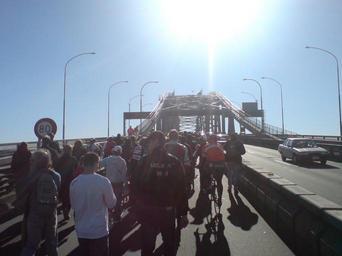 | Keywords: Auckland Harbour Bridge Protest 03.jpg Protesters for a walk- and cycleway across the Auckland Harbour Bridge between Auckland City and North Shore City in New Zealand shown near the central span after having walked up on the southern-side approach viaduct on the closed northbound lanes The protesters swarmed onto the bridge after several individuals made their way around police barriers and walked / cycled onto the motorway upon which the whole northbound traffic was stopped by police and highway workers in turn animating the rest of the crowd to join them on the now-closed lanes with police deciding to abandon the attempt to turn them back self-photographed 2009-05-24 Uploader -36 83116 174 7451985 Photos taken by Ingolfson Crowds in New Zealand Protest for a walk- and cycleway across Auckland Harbour Bridge 2009 People of Auckland Speed limit signs in New Zealand |