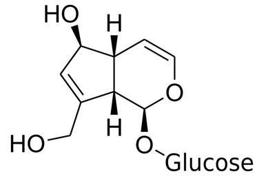 Keywords: Aucubin.svg Chemical structure of Aucubin an iridoid typically found in plants Own 2007-09-20 Alcibiades Glycosides Iridoids