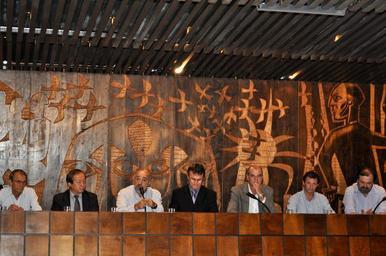 | Keywords: audiência pública Luiz Danilo Muehlmann (coordenador de pisicultura da EMATER-PR); Rui Hara (diretor presidente da coordenação da região metropolitana de Curitiba - COMEC); Rasca Rodrigues (PV); Antonio Wandsceer(PT) (proponente da sessão e presidente da comissão); José Wigineski ( superintendente federal do ministério da pesca e aquicultura no PR); Taciano Maranhão (engenheiro de pesca do instituto ambiental do Paraná); Antonio Ostrensky (coordenador do grupo integrado de aquicultura da Universidade Federal do Paraná - UFPR) / Foto : Maria de Freitas (uso so crédito obrigatório) Luiz Danilo Muehlmann (coordenador de pisicultura da EMATER-PR); Rui Hara (diretor presidente da coordenação da região metropolitana de Curitiba - COMEC); Rasca Rodrigues (PV); Antonio Wandsceer(PT) (proponente da sessão e presidente da comissão); José Wigineski ( superintendente federal do ministério da pesca e aquicultura no PR); Taciano Maranhão (engenheiro de pesca do instituto ambiental do Paraná); Antonio Ostrensky (coordenador do grupo integrado de aquicultura da Universidade Federal do Paraná - UFPR) / Foto : Maria de Freitas (uso so crédito obrigatório) |