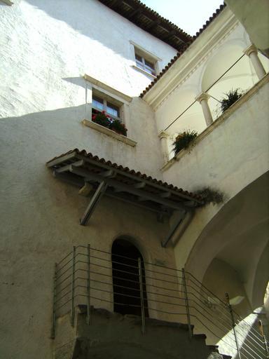 Keywords: Aufgang Innenhof.jpg Denkmalgeschütztes Objekt Südtirol 15643 de Aufgang zum Rückwärtigen Gebäude im Innenhof von Schloß Goldrain own Erwin Lindemann 7 6 2010 Schloss Goldrain