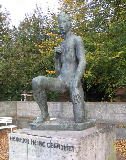 | Keywords: Aufsteigender Jüngling, Düsseldorf Ehrenhof 2011 (1).jpg Georg Kolbe Aufsteigender Jüngling Düsseldorf Ehrenhof 1931 schrieb die Stadt Düsseldorf einen Wettbewerb für ein den Bürgern schon lange versprochenes Heinrich-Heine-Denkmal aus aufzustellen im Ehrenhof Den Wettbewerb gewann der Berliner Künstler Georg Kolbe vor Arno Breker und Johannes Knubel Nach zwei Jahren intensiver Arbeit an dem doppelt mannshohen Denkmal hatten sich die politischen Verhältnisse so sehr geändert dass ein Denkmal zu Ehren des Juden Heine nicht mehr denkbar war der bereits zweite sehr späte Versuch für ein Düsseldorfer Heinedenkmal war damit ebenfalls für lange Zeit gescheitert Man platzierte den knienden Aufsteigenden Jüngling der nicht Heine zeigt sondern menschliches Streben und Mühen versinnbildlicht im Vestibül des Hetjens-Museums das sich damals noch im Ehrenhof befand Von dort kam er nach dem Krieg ins Kunstmuseum 1949 endlich auf einem neu geschlagenen Sockel aus Muschelkalk an die dafür vorgesehene Stelle auf der östlichen Seite des Ehrenhofs immer noch ohne den Hinweis auf Heine 1953 entstand stattdessen eine Heine-Gedenkstätte im Hofgarten 1981 schuf Bert Gerresheim das Heine-Monument am Rand der Parkanlage Schwanenmarkt Seit 2002 weist inzwischen eine erklärende Plakette und eine Inschrift auf den Zusammenhang vom žAufsteigenden Jüngling zu Heine hin Das gespaltene Verhältnis Düsseldorfs zur Ehrung Heines war auch im Zusammenhang mit den Querelen um die Heine-Denkmäler immer wieder Mittelpunkt öffentlicher Diskussion Ein weiteres Werk Kolbes der Stehende Jüngling ist wenige hundert Meter nördlich in der Kaiserswerther Straße 137 vor dem Drahthaus aufgestellt own 2011-10-29 Kürschner <span class signature-talk >talk</span> 07 56 30 October 2011 UTC Kürschner <gallery> File Aufsteigender Jüngling Düsseldorf Ehrenhof 2011 2 jpg </gallery> FoP-Germany Aufsteigender Jüngling Georg Kolbe |