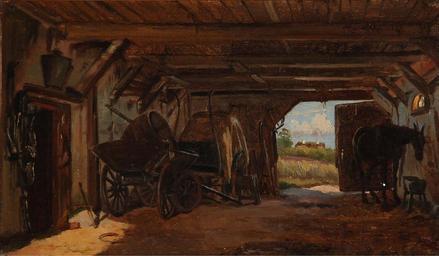 | Keywords: August Fischer - En staldbygning med en opslået port bagest.jpg En staldbygning med en opslået port bagest century 19 oil canvas cm 22 37 object history exhibition history credit line Signed August Fischer accession number http //www bruun-rasmussen dk/search do iid 300499411 cid 453 mode detail Bruun Rasmussen PD-old-auto-1923 1921 August Fischer Interiors of barns in art | ||||