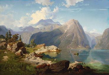 | Keywords: August Wilhelm Leu - Hardanger Fjord.jpg August Wilhelm Leu 1819-1897 date oil canvas cm 58 5 82 5 accession number object history Private collection Hannover credit line exhibition history ~ lower right signature This work is most likely copy after Ludwig August Most<ref>http //www sothebys com/en/auctions/ecatalogue/2007/an-important-private-collection-from-hanover-am1020/lot 140 html Sotheby's</ref><small> reflist </small> http //www sothebys com/en/auctions/ecatalogue/2007/an-important-private-collection-from-hanover-am1020/lot 140 html Sotheby's Amsterdam 27-29 March 2007 lot 140 PD-old-100 August Wilhelm Leu 19th-century landscape paintings Images from Sotheby's Hardangerfjord in art |