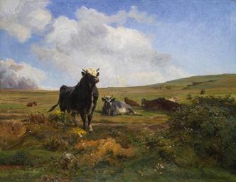 | Keywords: Auguste Bonheur - Chef de la harde.jpg Artwork Creator Auguste-François Bonheur Leader of the herd 1862 oil canvas cm 114 3 146 1 object history Dixon Dixon New Orleans; Acquired from the above by the late owner credit line A Bonheur ~ lower right signature accession number http //www sothebys com/en/auctions/ecatalogue/2011/old-master-and-19th-century-european-art-n08761/lot 298 html Sotheby's New York 10 June 2011 lot 298 PD-old-100 Auguste-François Bonheur Paintings of cattle 1862 paintings Images from Sotheby's |