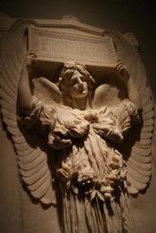 | Keywords: Augustus Saint-Gaudens, The Angel of Purity (Maria Mitchell Memorial) (1902, detail).jpg Artwork Creator Augustus Saint-Gaudens A monument in remembrance of Maria Gouverneur Mitchell died 1898 aged 22 years commissioned by her parents Dr w Silas Weir Mitchell and Mary Cadwalader Mitchell for St Stephen's Episcopal Church Philadelphia where their daughter taught children's classes Saint-Gaudens based the sculpture on an earlier bronze figure Amor Caritas which he had created for the Musée d'Orsay Paris; another version of this is in the Cleveland Museum of Art The features of the angel were modelled after those of his mistress Davida Clark 1902 marble in 96 48 12 Institution Philadelphia Museum of Art Pennsylvania Philadelphia United States accession number 2005-2-1 object history 2005 Acquired using the Annenberg Fund for Major Acquisitions gifts from Mr and Mrs Wharton Sinkler and Mrs T Charlton Henry by exchange and funds contributed by the Margaret Dorrance Strawbridge Foundation of Pennsylvania II Inc credit line top BLESSED ARE THE / PURE IN HEART FOR / THEY SHALL SEE GOD ; bottom IN MEMORY OF / MARIA GOUVERNEUR MITCHELL / BORN MARCH XXI MDCCCLXXVI March 21 1876 / DIED JANUARY XXIV MDCCCXCVIII January 24 1898 http //www philamuseum org/collections/permanent/290521 html mulR 9700 1 Own ; photographed by Smuconlaw on 2012 05 03 15 15 other versions 100x100px Augustus Saint-Gaudens The Angel of Purity Maria Mitchell Memorial 1902 jpg PD-old-100 cc-by-sa-3 0 GFDL The Angel of Purity Maria Mitchell Memorial 1902 by Augustus Saint-Gaudens |
