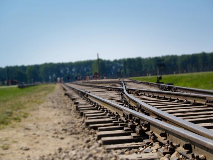Keywords: auschvitz - birkenau train concentration camp railroad tracks prison