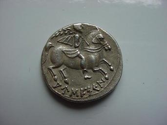 | Keywords: Ausesken 1b dels Ausetans.jpg ca Revers d'un denari de plata del poble ibèric dels ausetans La moneda pesa 3'8 grams i mesura 18 mm de diàmetre Revers Genet vestit amb una clàmide i que agafa una palma A sota la llegenda AUSESKeN segueix la corba de la moneda Hi ha una gràfila lineal al cantó inferior dret en Reverse of a silver denarius of the Iberian people of Ausetani The coin weighs 3 8 grams and measures 18 mm in diameter Reverse Rider wearing a chlamys and grabing a palm Below we read the legend AUSESKeN following the coin's curve There is a linear gràfila lower right corner es Reverso de un denario de plata del pueblo ibérico de los ausetanos La moneda pesa 3'8 gramos y mide 18 mm Reverso Ginete vestido con una clámide y que aguanta una palma Debajo hay la leyenda AUSESKeN contorneando la moneda Hay una gráfila lineal en la parte inferior derecha 2009-12-09 http //rgonzalez blogspot es/1260349800/ ca Col·lecció particular de rgonzalez en rgonzalez's private collection rgonzalez La present és el revers l'anvers és Ausesken 1 dels Ausetans The present photo is the reverse the obverse is Ausesken 1 dels Ausetans rgonzalez http //rgonzalez blogspot es/general phtml date 1260349800 dominio blogspot es Los denarios ibericos See the comments of the author rgonzalez with user of Wikimedia Commons Galazan Uploaded with UploadWizard Ausetani Coins of the 2nd century BC Iberian coins |