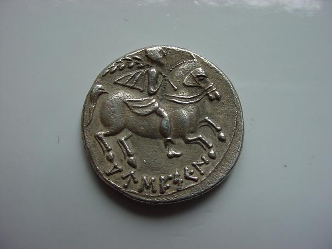 Keywords: Ausesken 1b dels Ausetans.jpg ca Revers d'un denari de plata del poble ibèric dels ausetans La moneda pesa 3'8 grams i mesura 18 mm de diàmetre Revers Genet vestit amb una clàmide i que agafa una palma A sota la llegenda AUSESKeN segueix la corba de la moneda Hi ha una gràfila lineal al cantó inferior dret en Reverse of a silver denarius of the Iberian people of Ausetani The coin weighs 3 8 grams and measures 18 mm in diameter Reverse Rider wearing a chlamys and grabing a palm Below we read the legend AUSESKeN following the coin's curve There is a linear gràfila lower right corner es Reverso de un denario de plata del pueblo ibérico de los ausetanos La moneda pesa 3'8 gramos y mide 18 mm Reverso Ginete vestido con una clámide y que aguanta una palma Debajo hay la leyenda AUSESKeN contorneando la moneda Hay una gráfila lineal en la parte inferior derecha 2009-12-09 http //rgonzalez blogspot es/1260349800/ ca Col·lecció particular de rgonzalez en rgonzalez's private collection rgonzalez La present és el revers l'anvers és Ausesken 1 dels Ausetans The present photo is the reverse the obverse is Ausesken 1 dels Ausetans rgonzalez http //rgonzalez blogspot es/general phtml date 1260349800 dominio blogspot es Los denarios ibericos See the comments of the author rgonzalez with user of Wikimedia Commons Galazan Uploaded with UploadWizard Ausetani Coins of the 2nd century BC Iberian coins |