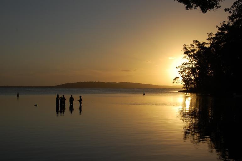 Keywords: australia sea lake sunset group landscape rest mood atmospheric silhouette abendstimmung golden dusk back light sky romantic water evening idyllic holiday recovery personal wide