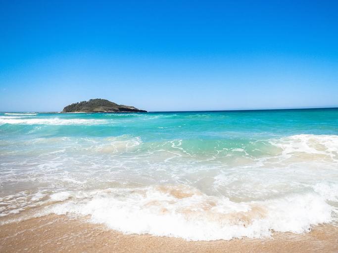 Keywords: australia ulladulla sea island blue sky waves sand beach water azure