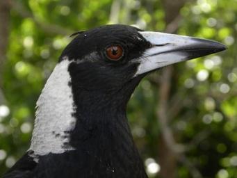 | Keywords: birds fauna australia central queensland centralqueensland wildlife outdoor animal bird This is one of two magpies that quickly discovered that we feed a family of kookaburras. They hear us calling the kookaburras and often fly over before the kookaburras get here. Obviously used to human contact, this one will take food from our hands and eat some herself and take some back to her babies. There's also a pied butcherbird who has discovered our home from our back verandah. He/she is a little shyer but if feeling very hungry will take food direct from our fingers. All three species are quite wary of each other and usually quite territorial (especially the magpies), but for the sake of free food, declare a temporary truce on our back verandah. (Gymnorhina tibicen) This is one of two magpies that quickly discovered that we feed a family of kookaburras. They hear us calling the kookaburras and often fly over before the kookaburras get here. Obviously used to human contact, this one will take food from our hands and eat some herself and take some back to her babies. There's also a pied butcherbird who has discovered our home from our back verandah. He/she is a little shyer but if feeling very hungry will take food direct from our fingers. All three species are quite wary of each other and usually quite territorial (especially the magpies), but for the sake of free food, declare a temporary truce on our back verandah. (Gymnorhina tibicen) |