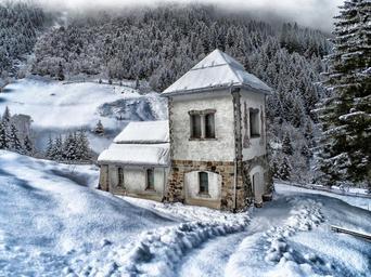 Keywords: austria landscape scenic building house forest trees countryside winter snow rural nature outside hdr