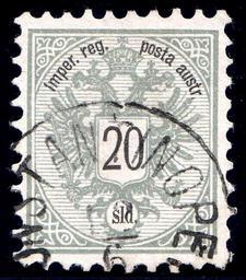 | Keywords: Austria Levant 1883 Sc12.jpg en Postage stamp of the Austro-Hungarian Empire for usage by Levant post offices 20 soldi grey and black used in Constantinopel Catalogue Sc 12 Mi 12 Valid for postage to 31 7 1888 1883 Scan of original Austro-Hungarian postal authorities PD-old 1883 stamps Austrian post offices in the Ottoman Empire Double-headed eagles on stamps Animals on stamps to be categorised by country | ||||