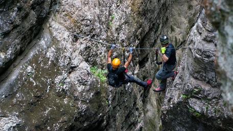 Keywords: austria mountains alpine climb climbing rope bridge shimmy helm gorge summer nature landscape massif