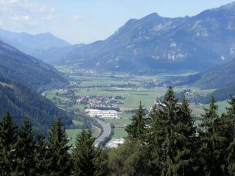 Keywords: austria styria mountains valley ravine town village buildings grass plants forest trees woods nature outside scenic vista road highway summer spring country countryside sky clouds