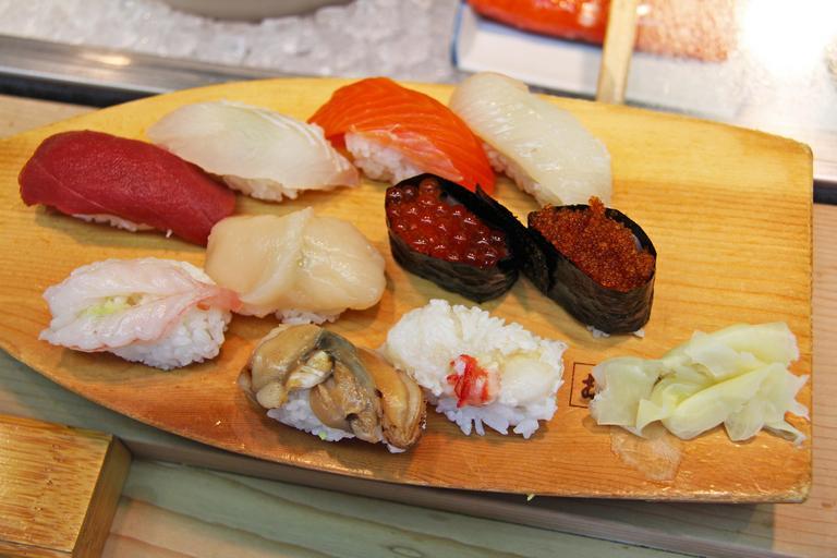 Keywords: authentic sushi sashimi shrimp prawn roe raw rice fish wasabi yummy restaurant sushi street otaru hokkaido japan lunch