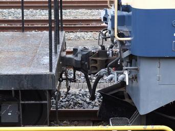 Keywords: Auto brake.JPG ja EF65電気機関車とのホキ800形との 結部分 自動ブレーキホースが 結されている(尾久駅ホームから撮影) 投稿 が撮影 toshinori baba 2010-02-20 Check categories 2010 February 21 ja wikipedia 自動空気ブレーキ 2 Knuckle coupler Railway air brake