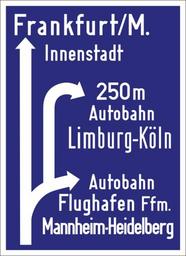 | Keywords: Autobahn-Vorwegweiser - vor 1956.svg de Autobahn-Vorwegweiser während der Nachkriegszeit wie sie bis zur StVO-Novelle von 1956 hergestellt wurden Nach einem historischen Foto Die amtliche ultramarinblaue Farbgebung wurde der Farbkarte RAL 840 B 2 entnommen Der durch den RAL deffinierte digitale Farbton wird hier wiedergegeben Siehe oben Interpretiert und gezeichnet durch Mediatus Mediatus 2013-11-10 Herstellungsdatum other fields + Signs User Mediatus/no-new-version Cc-zero PD-Vz historisch Blue and white signs SVG road signs in Germany German language signs Diagrams of direction road signs of Germany Diagrams of motorway road signs of Germany 1953 set |