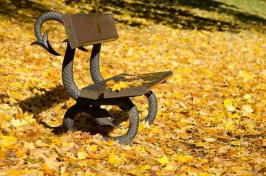 Keywords: autumn bench leaves leaf yellow seasons park weather
