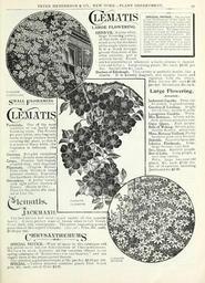 | Keywords: Autumn bulbs catalogue (15829443794).jpg PETER HENDERSON CO NEW YORK ” PLANT DEPARTMENT <br> 49 <br> MATIS <br> LARGE FLOWERING <br> HENRYn A pure white <br> lar e Howenng variety <br> of fine form and recog- <br> nized as by far the finest <br> of the single white sorts <br> It is a much stronger <br> grower than most of the <br> other varieties and is <br> SPECIAL NOTICE - On account <br> of the brittleness of the bark on <br> Clematis it cracks very easily and <br> many people believe the plant to <br> be permanently injured when such <br> is not the case We issue this no- <br> tice on account of the numerous <br> letters we get on the subject We <br> wish to say also that we examine <br> all plants carefully before ship- <br> ping to see that they are in good <br> condition and if they die after <br> being planted as must sometimes <br> happen we do not af ree to replace <br> tlum <br> CLEMATIS <br> PASICUL \TA <br> lemItis <br> Paniculata One of the most <br> beautiful of our hardy fall- <br> blooming vines The flowers <br> are pure white very fragrant <br> borne in large clusters fairly <br> covering the plant so that it <br> is a mass of fleecy white ; the <br> fragrance is delicious See <br> cut I <br> Coccinea Bright vermillion <br> scarlet ; flowers cone-shaped <br> Crispa Flowers bell-shaped <br> purplish blue very fragrant <br> Flammula Virgins Bower <br> Pure white blooms in large <br> pendant clusters fragrance <br> like hawthorn Ready in Oct <br> Graveolens A pretty variety <br> with light yellow clusters of <br> flowers Ready in Oct <br> Price for the above 30c each <br> set of 5 for ' Jc <br> JACKMAIVII <br> The best-known and most valued variety of this popular <br> family A most perfect mass of bloom when in full flower <br> Color dark rich royal purple The above engraving gives a <br> good idea of this superb Clematis See cut Price bOc each <br> 6 00 per doz <br> pHRYSAXTHEMUMO <br> SPECIAL NOTICE ” Want of space in this catalogue will <br> not permit us to list our full collection of Chrysanthemums <br> We have in stock however all the varieties offered in our <br> spring catalogue of ' ¢Evkkv ruiNr for iiik Garden and can <br> supply them at the prices quoted therein <br> Our selection a good assortment at 75c per doz 4 00 per 100 <br> SPECIAL ” Twelve selected varieties plants from 5-inch <br> pots 25c each; set of 13 for 2 35 <br> entirely hardy E KCell- <br> ent for cemeteries or wherever a hardy climber is desired <br> See cut below Large strong plants GOc each 6 00 per <br> doz Second size 4 'c each <br> Duchess of Edinburgh This variety is perfectly double like a <br> rosette It is sweetly fragrant and equally hardy and <br> vigorous with the others <br> Price 1st size 60c each t; 00 <br> per doz Second size 40c each <br> Large Flowering <br> Assorted <br> Jackmanii Superba Deep vio- <br> let purple A grand variety <br> Countess of Lovelace bright <br> bluish lilac double flowers <br> Lanuginosa Candida White <br> Miss Bateman Silvery white <br> dark anthers attractive sort <br> Gipsy Queen Rich purple <br> Belle of Woking Silvery gray <br> double flcnvers attractive <br> Mme Baronne Veillard Pretty <br> lavender pink very distinct <br> Sieboldii Beaut iCuHavender <br> Lilacina Floribunda Lilac <br> large flow ers very free <br> Gen Grant Reddish purple <br> Star of India Deep purple a <br> very fine variety <br> Price large two year-old <br> plants 5Cc each 00 doz <br> Set of 14 varieties including <br> Jackmanii for 6 00 <br> CLEMATIS <br> JACKMANII – i <br> CLEMATIS <br> HENRVU 43899761 149965 78524 Page 49 Text http //www biodiversitylibrary org/page/43899761 1900 10 5962/bhl title 78524 Henry G Gilbert Nursery and Seed Trade Catalog Collection ; Peter Henderson Co NameFound CLEMATIS NameConfirmed Clematis ser Alpina W J Yang L Qian Li EOLID 38289 NameFound Clematis jackmanii NameConfirmed Clematis jackmanii EOLID 596376 NameBankID 3873631 NameFound Coccinea NameConfirmed Coccinea Feuillet J M MacDougal supersect NameBankID 9261559 NameFound Flammula NameConfirmed Flammula EOLID 6688969 NameBankID 242750 NameFound Floribunda NameConfirmed Floribunda EOLID 5190123 NameBankID 3474597 NameFound Lanuginosa NameFound Lilac NameConfirmed Lilac P Miller 1754 NameFound Lilacina NameFound Paniculata NameFound Superba NameConfirmed SUPERBA NameBankID 5322983 Biodiversity Heritage Library Autumn bulbs catalogue 1900 Garden Stories Bulbs Plants Catalogs Equipment and supplies Flowers Gardening Seeds Trade catalogues U S Department of Agriculture National Agricultural Library bhl page 43899761 dc identifier http //biodiversitylibrary org/page/43899761 Peter Henderson Co bhlGardenStories Clematis BHLinbloom bulbs plants u s department of agriculture national agricultural library peter henderson co bhlgardenstories bhlinbloom Information field Flickr posted date ISOdate 2015-02-05 CC-BY-2 0 BioDivLibrary https //flickr com/photos/61021753 N02/15829443794 2015-08-24 23 52 11 cc-by-2 0 PD-old-70-1923 Autumn bulbs catalogue Photos uploaded from Flickr by Fæ using a script |