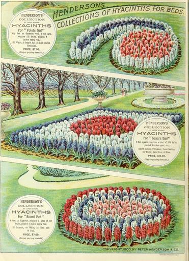 Keywords: Autumn bulbs catalogue (16450172471).jpg HENDERSON'S <br> COLLECTION <br> OF LARG£ BIDDING <br> jl For Volute Bed <br> Si6 feet in dkmetsr with Woot »nn <br> reqairss 125 bulbs planted 6 ; <br> inches apart Tii <br> So WMte 15 Purple and 55 Rosa Colored <br> Hjaoinths / <br> PRICE 7 50 / <br> CBuycr paying transit / <br> l am II –  I ' l l H IM i <br> pimCff TfiS FORbBs <br> mi <br> iltf ' '1 <br> HENDERSONS <br> COLLECTION <br> / OF LARGE B£DDl iG <br> HYACIISfTHS <br> For Square Bed <br> 6 feet square requires a total of 169 Iralhs <br> planted 6 inches apart Tit <br> GGDtre Section 37 Crimson ; Inner Section <br> U White; Outer Rot 48 Blue <br> PRICE 10 00 <br> Buyer pnjiiHt transit <br> HENDERSON'S <br> COLLECTION <br> OF LARGE OEDDINQ <br> HYACINTHS <br> For Round Bed \ <br> '6 feet in diameter requires a total of 118 <br> bulbs planted 6 inches apart m <br> Crimson +4 White 24 Blue and <br> 18 Pink <br> PRICE 7 00 <br> Buyer pnyinu transit / <br> '3p <br> COPYRIGHT I900 BY PETER HeNDERSON CO 43899722 149965 78524 Page 10 Text http //www biodiversitylibrary org/page/43899722 1900 10 5962/bhl title 78524 Henry G Gilbert Nursery and Seed Trade Catalog Collection ; Peter Henderson Co Biodiversity Heritage Library Autumn bulbs catalogue 1900 Garden Stories Bulbs Plants Catalogs Equipment and supplies Flowers Gardening Seeds Trade catalogues U S Department of Agriculture National Agricultural Library bhl page 43899722 dc identifier http //biodiversitylibrary org/page/43899722 Peter Henderson Co bhlGardenStories Hyacinths Bedding Plants Garden Design BHLinbloom bulbs plants u s department of agriculture national agricultural library peter henderson co bhlgardenstories bedding plants garden design bhlinbloom Information field Flickr posted date ISOdate 2015-02-05 Check categories 2015 August 24 CC-BY-2 0 BioDivLibrary https //flickr com/photos/61021753 N02/16450172471 2015-08-24 23 51 24 cc-by-2 0 PD-old-70-1923 Hyacinthus Hyacinthaceae bedding plants garden design Autumn bulbs catalogue Photos uploaded from Flickr by Fæ using a script