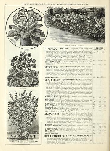 | Keywords: Autumn bulbs catalogue (16451954255).jpg PETER HENDERSON CO NEW YORK ” MISCELLANOUS BUI BS <br> FUNKIA5 <br> Day Iiilies Hniidsome hardy foliage ami <br> th'vvcriiij; pl -ints Their noble aspect elesHnt <br> outline ami bold luxuriant foM igre render them exeeedinjrly <br> attractive for larfre effective chiniiis sncceeding in sunny jiosi- <br> tions and equally well in shady jilaces where many plants would <br> not exist They are also much grown in Europe for greenhouse <br> decoration in winter i Heady in yoveniher See cut <br> Subcordata Grandiflora White Plantain Day Lily Very <br> showy splendid milky white flowers nearly 4 inches long very <br> frairrant s'ee cut <br> Sieboldi Variegata A noble fall-blooming plant foliage very <br> liniids nie livelv green and variegated with white; fl wers pnr- <br> plish lilac <br> PSICES <br> Delirered Free in D <br> Eacb Doz <br> 100 <br> l -ic 1 50 10 1 1 <br> loc' 1 50 <br> / pjCNrpDA Greenhouse tnberous-rooted plants remark- <br> et 01 C IV' able for the beauty of their foliage which is <br> singularly marked and soft as velvet and al -io for their spikes of <br> brilliantly colored tiowers mostly scarlet and yellow For a con- <br> tinuous succession of bloom the plants should be started at dif- <br> ferent times Those st arted into growth in spring or summer <br> first will come into bloom b r the end of Soptemlipr and the <br> others will follow in succession through winter and siiring <br> Mixed Varieties <br> fll \r\lf\1 I TC Early Ploweringf Hardy For intiimn \ <br> KJL r\Ul\JL KJ Jm lilunriiiL ' or Winifr roniiif ' These beauti- <br> ful Early-Howering Gloiliolus are greatly prizetl on account of j <br> their bloomiVg in Inne nnd Inly if planted in the autumn in dry I <br> soil and i rotM'ted with a covering of about six inches of straw <br> leaves or litteK 1/ planted In cold frames they will flower as <br> early as May Vnd this is perhajis the better way in very cohl ' <br> localities ThesVGladitdus are also invaluable for flowering in <br> the greeidionserer winter bloom The flowers an' sTualler ami <br> more refined tl Amth ise of the Gandavensis Uladhdus the colors <br> and markinga'an'Yery handsome the bulbs can be kepi dormant <br> until spring 'and \lien be planted In open ground if prefern-d <br> t Rnulv in yr yeinl \- s'eec/vf <br> Blushing' Bride A '/;V;iri s-;//; /i White with lovely pink nnd <br> cnnniiic llnkes on tie lower petals - <br> Eosy Gem Delicat»\rosy pink invaluable for cutting <br> The Bride C lvilli \lli Heautitul purest white flowei-s set <br> rl ps ly on Ihestem most valuable for forcing for cut flowers <br> Alexis r osy cream ieautifully flakeil <br> Gen'l Scott White tniged satiny rose very fine <br> Prince of Orange l4irk orange pink flaked white <br> Sarnian Gem S ilnuAi with white and criinsim flakes <br> Chas Macintosh Sr -\rlet with violet il ikes <br> 1 l iilt M h of ibove s named Cla Mollis 7o - l euch 2 00 <br> Mixed Early-fiowering Hardy Gladiolus <br> lO oo <br> 20c 2 00 15 00 <br> 10c <br> 1 00 <br> 8 O0 <br> lOc <br> 1 00 <br> 7 00 <br> 4e <br> 30 <br> 1 75 <br> 10c <br> 1 00 <br> 8 00 <br> 1 ˘ – <br> 1 2 ' <br> lO OO <br> 7c <br> 75 <br> S tio <br> UK- <br> 1 00 <br> 7 no <br> 10c <br> 1 00 <br> 8 00 <br> 35 <br> 2 00 <br> GLOXINIAS <br> Most charming greenhouse plants of dwarf <br> habit Their tiowers ” often 't to 4 Inches <br> acnNjj ” an' roihired In greatest profusion ami an- of the nvost <br> exqulsTte and gorgeous colors; many of which an- magnlfl- <br> lentlv spotted mottled aii l blended I'lidcr the commonest rid- <br> tniv thev bloom continuously for mouths and by starting nt <br> intervals a succession of their splendid flowers may bo h ul i <br> nearly the whole yi'ur round SVe ri;f l Hi-aily in Wni'niliir l <br> Defiance Ilowlng crimson scarh't lustrous and rich <br> Emperor Frederick Bright rosy scarlet bonlen-d with a pure <br> « liilc l ind strikingly bi-aiitlful <br> Tig'er Spotted I' cautlfully spotted nnd mottled <br> Kaiser Wilhelm \elvety ceruh-an blue with deep whito throat <br> Mont Blanc I'nre satiny white; extiulslle <br> 1 linib each of above 5 imined iloxliiliis tt 'c; S each 1 7 <br> Mixed Varieties – <br> HELLEBORUS V iL Tif <br> or Christmas Bose <br> I haidy plants grow- <br> ing tri-eh III alino -t ni\\ situation llowerllig in gn-at pi-otilsloii <br> In early spring and If grown in the hoiw or In IraiiieK will <br> bloom from Deit-nilH-r all thnnigli the winter iiioiiiIih The <br> flowers two to thnf Inches In diameter an- of pun- while – sv - <br> rtit I I lli iily In Viiicm/ierl – <br> l nc 1 50 <br> 1 - C <br> 1 50 <br> lO oo <br> 1 - c <br> 1 50 <br> 10 10 <br> 1 ' c <br> 1 50 <br> 10 oo <br> l -c <br> 1 no <br> 10 Oil <br> V2r 1 35 <br> »i i- <br> 10 00 43899746 149965 78524 Page 34 Text http //www biodiversitylibrary org/page/43899746 1900 10 5962/bhl title 78524 Henry G Gilbert Nursery and Seed Trade Catalog Collection ; Peter Henderson Co Biodiversity Heritage Library Autumn bulbs catalogue 1900 Garden Stories Bulbs Plants Catalogs Equipment and supplies Flowers Gardening Seeds Trade catalogues U S Department of Agriculture National Agricultural Library bhl page 43899746 dc identifier http //biodiversitylibrary org/page/43899746 Peter Henderson Co bhlGardenStories Gladiolus Gloxinia BHLinbloom bulbs plants u s department of agriculture national agricultural library peter henderson co bhlgardenstories bhlinbloom Information field Flickr posted date ISOdate 2015-02-05 CC-BY-2 0 BioDivLibrary https //flickr com/photos/61021753 N02/16451954255 2015-08-24 23 53 16 cc-by-2 0 PD-old-70-1923 Autumn bulbs catalogue Photos uploaded from Flickr by Fæ using a script |