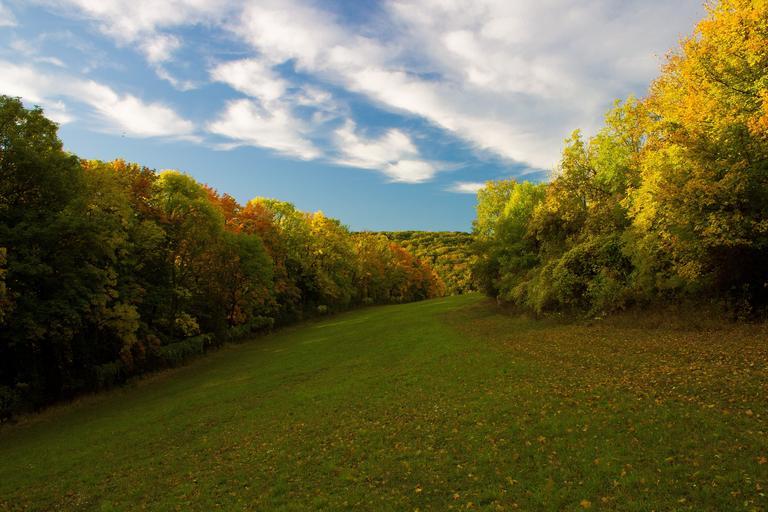 Keywords: autumn deciduous trees deciduous forest fall color forest meadow nature october fall foliage landscape idyll earth tones trees autumn colours