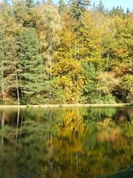 Keywords: autumn emerge pond park tree autumn forest mirroring colorful