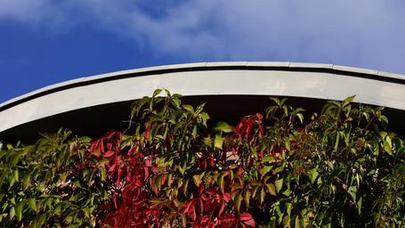 Keywords: autumn fall colors red leaves virginia creeper blue sky bright