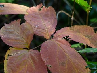 Keywords: autumn fall leaves early morning sunlight nature forest shrub plants