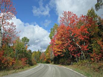 Keywords: autumn fall road trees leaves foliage colors sky clouds outdoors scenery nature country rural