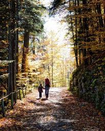 Keywords: autumn forest away personal mother child nature autumn forest autumn day leaves colorful mystical color mysterious light walk hiking family