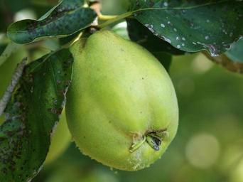 Keywords: autumn fruit quince green fruit immature fluffy hairy kernobstgewaechs plant pome fruit nature compote pick healthy jam quittenbaum tree vitamins jelly