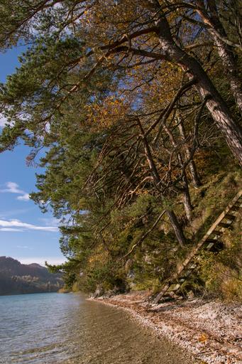 Keywords: autumn fuschlsee tree beach nature water bank forest lake