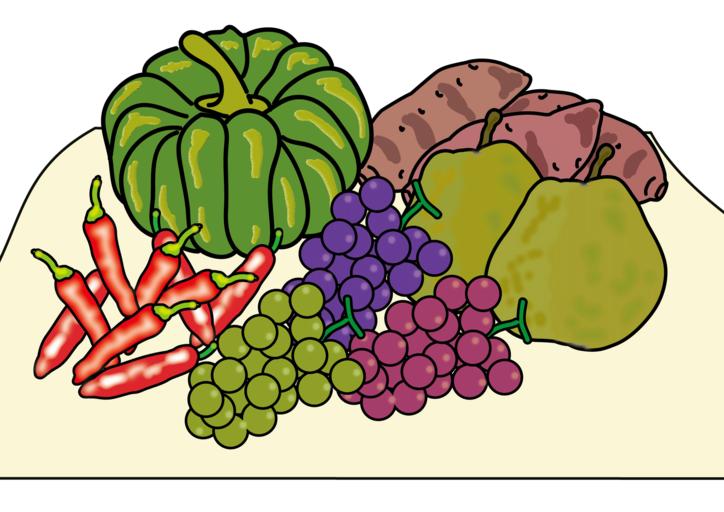 Keywords: autumn harvest vegetables pumpkin grape la france sweet potato cayenne pepper