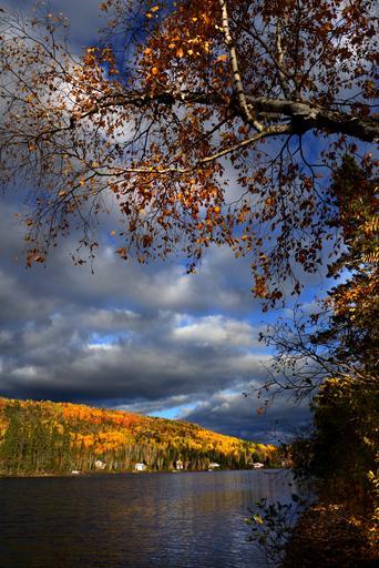 Keywords: autumn landscape lake nature sky colors trees mountain contrast leaves québec