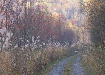 Keywords: autumn road vista forest outdoor red scene tree foliage natural vibrant park perspective green travel vivid yellow leaf bright oaks scenery orange grass maple serene countryside season flora wood stem october color