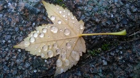 Keywords: autumn leaf drip drop of water leaves macro dew wet mood dewdrop