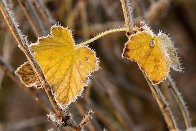 Keywords: autumn leaf hoarfrost currant yellow fall color bush cold