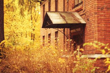 Keywords: autumn park house brick orange retro golden autumn leaves yellow trees nature yellow leaves golden