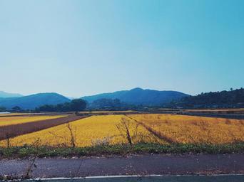 Keywords: autumn rice paddies ch nature haman fair wood yellow field country road republic of korea