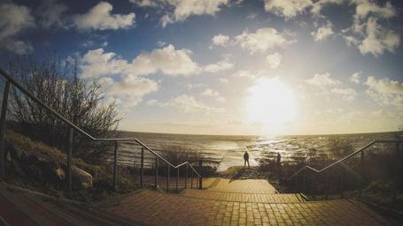 Keywords: autumn sea nature fall water sky coast landscape ocean travel outdoor sunset people freedom lifestyle sun walk thinking young road path bridge light looking think outside man alone standing urban