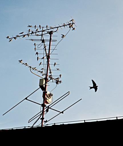 Keywords: autumn swallows before departure antenna roof houfování swallow bird birds