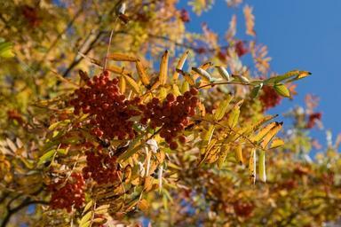 Keywords: autumn tree colourful leaves fall garden nature season sun red yellow orange red berry branch foliage