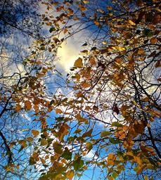 Keywords: autumn tree leaf blue skies the thicket